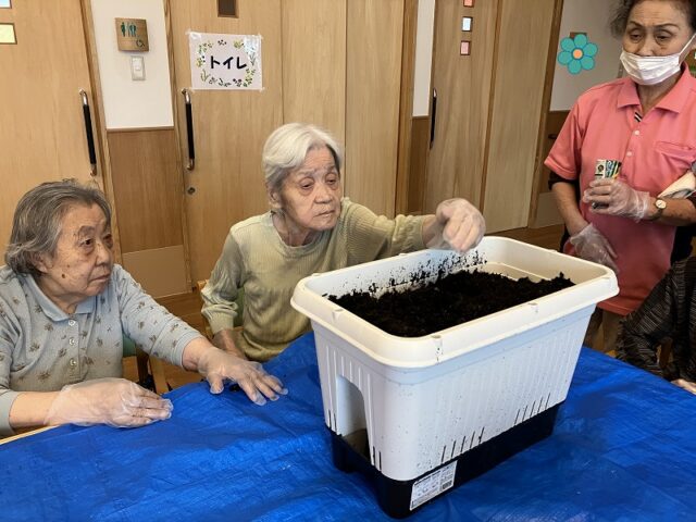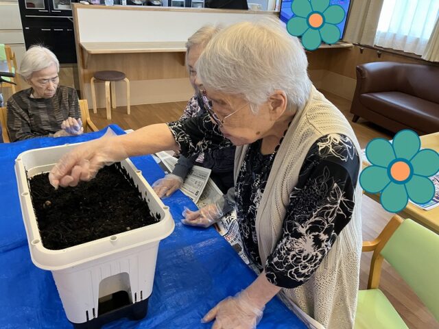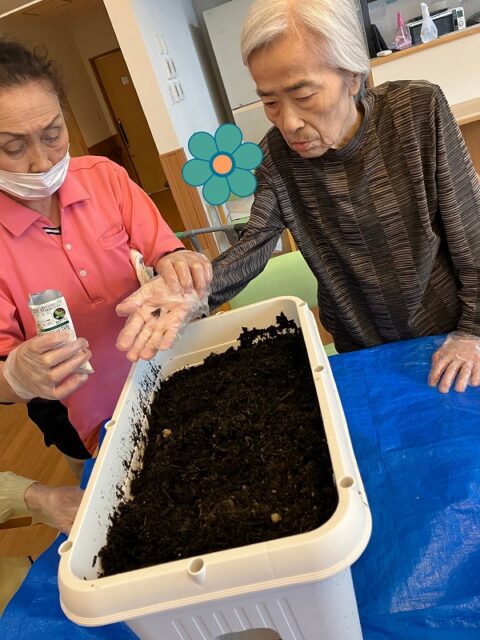 先日、利用者様に朝顔とゴーヤの種まきをしてもらいました🌱🌺