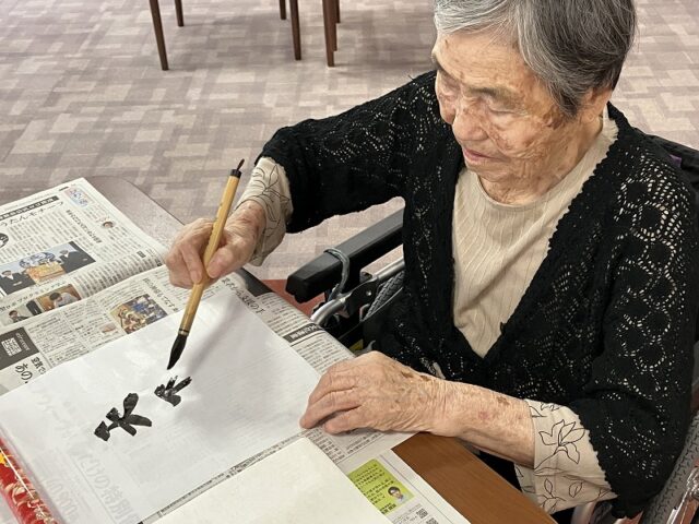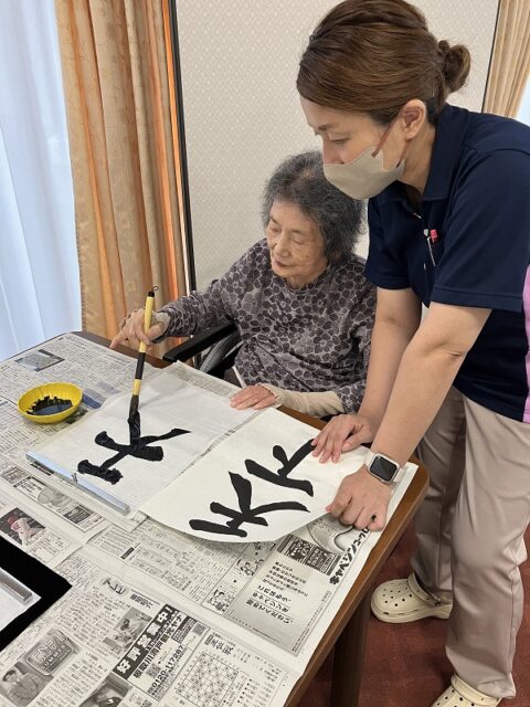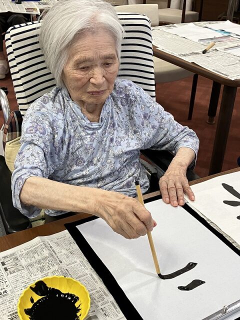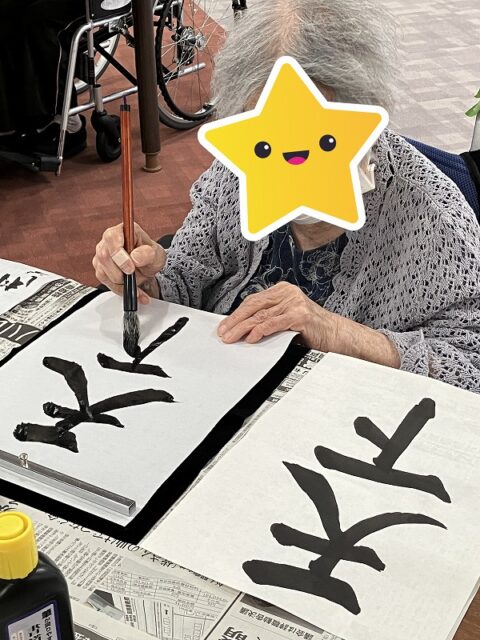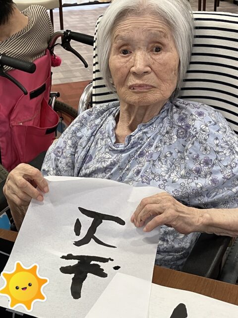 時間も迫っていた為、そのお手本をみて書く時間は少なかったものの、利用者様に「夏」の字を書いていただきました。今年の夏祭りの際に飾らせていただきます✨