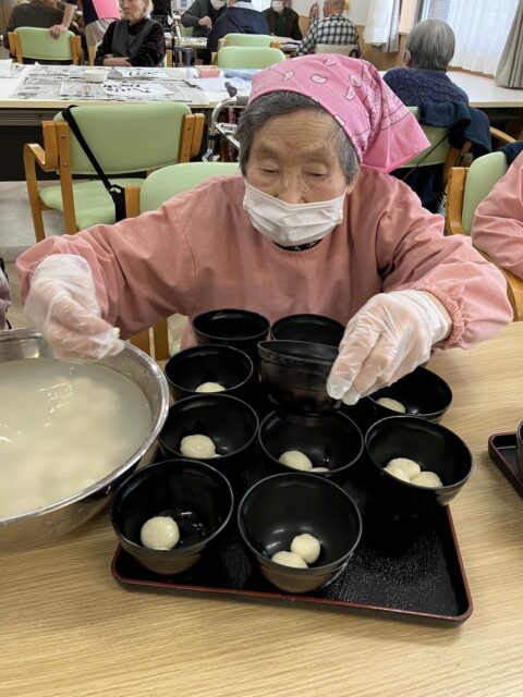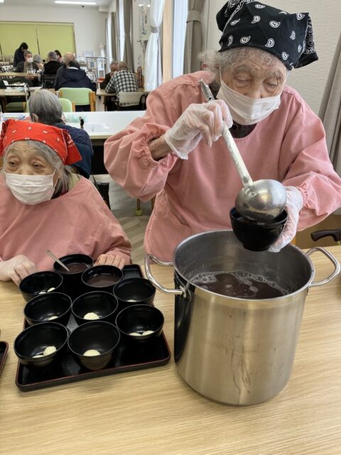 出来上がった白玉団子はとても柔らかく、お汁粉の甘さとよく合い、笑顔あふれるおやつの時間になりました💕