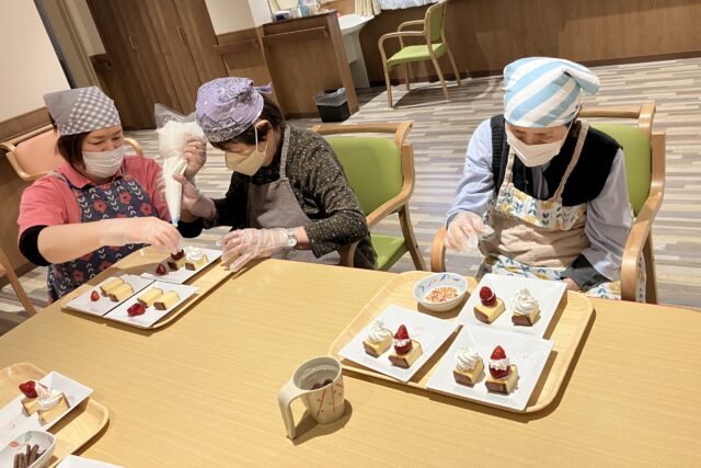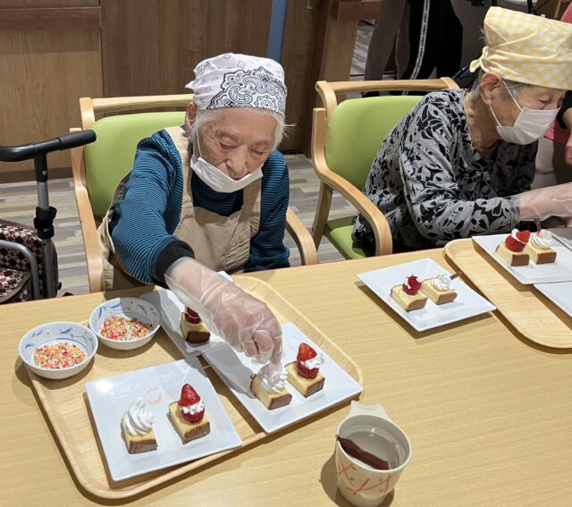 ホイップ係・ふりかけ係(カラーチョコをかける)・小枝を飾る係と…