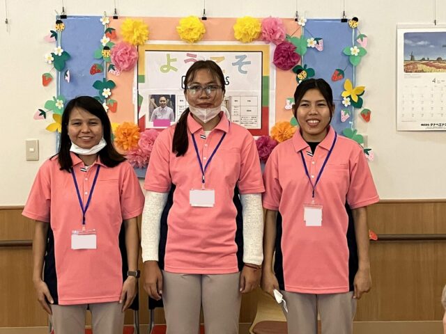 日本語での自己紹介では緊張した様子でしたが、一生懸命に話す姿を利用者様も優しく見守って下さいました。