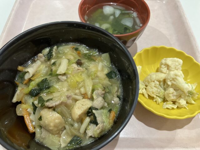 メニューは中華丼・カリフラワーとキャベツのマヨポン和え・中華スープです😊