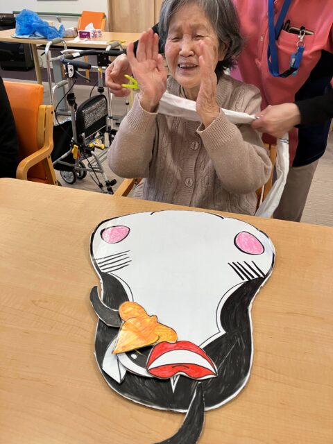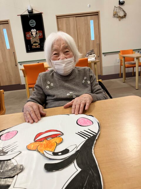 少し遅くなりましたが、皆様にお正月気分を味わってもらいたく、福笑いを行いました!