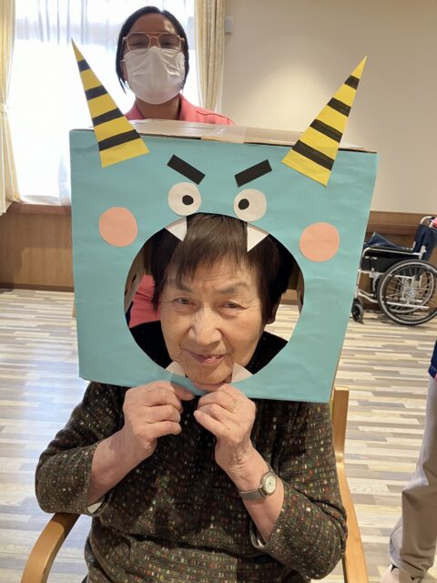 盛り上がった後は、鬼の顔がかわいいという事で、鬼のお面の様にかぶって撮影。いい表情が撮れました💕