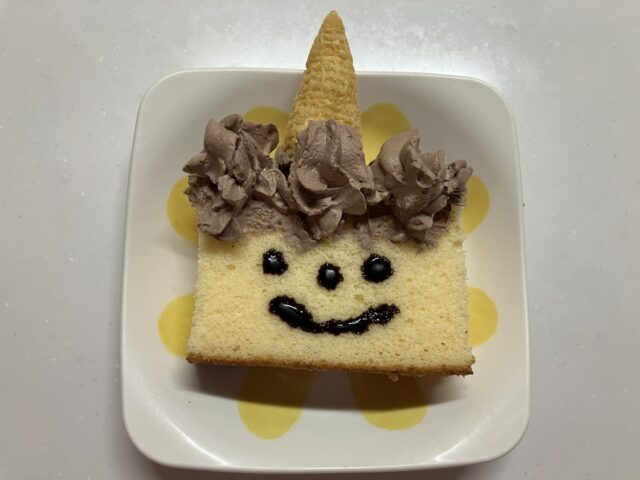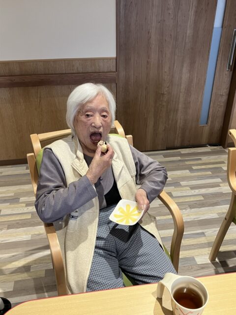 おやつはお隣の小多機ひばりにおられるお菓子作りの上手な利用者様が作ってくださった鬼のお菓子。