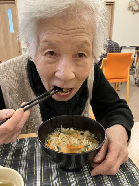 鍋🍲をお席に運ばせて頂き、利用者様の前でお椀に入れさせて頂きました😊