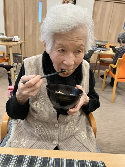 お鍋を出して準備をしている時から「今日は何をしてくれるんや?」や送迎の際に昼食の話を聞かれた利用者様から「楽しみにしてる(^^♪)寒くなってきたし、そういうの食べたいと思ってたんよ🌟」と温かい声を頂きました。
