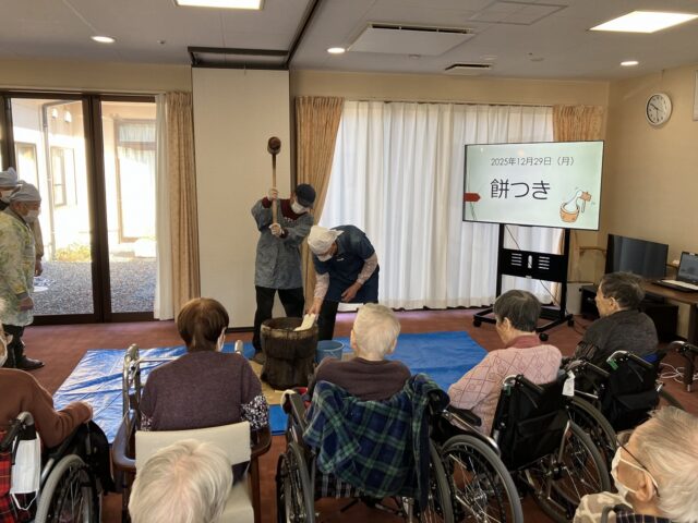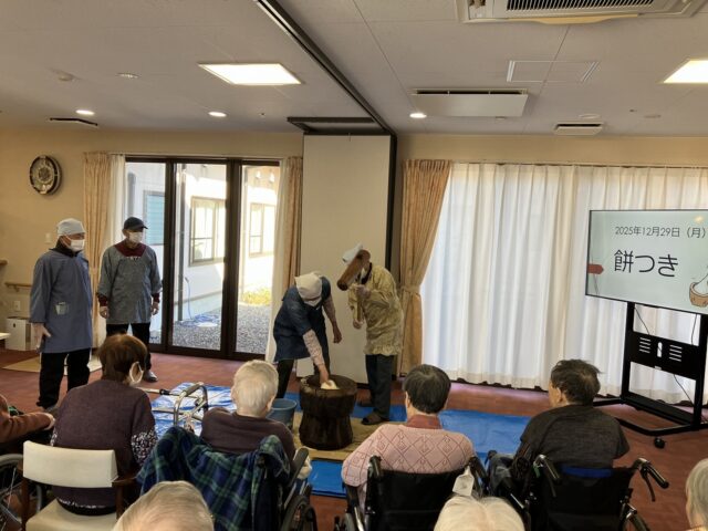 臼と杵も持ってきてくださり、利用者様の目の前でついていただきました。