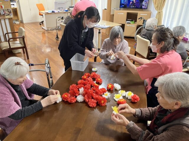 利用者様に季節を感じてもらおうと一生懸命調べて、先輩職員と一緒にアイデアを出し利用者さんの出来ない所はお手伝いしたりと頑張ってくれました!!