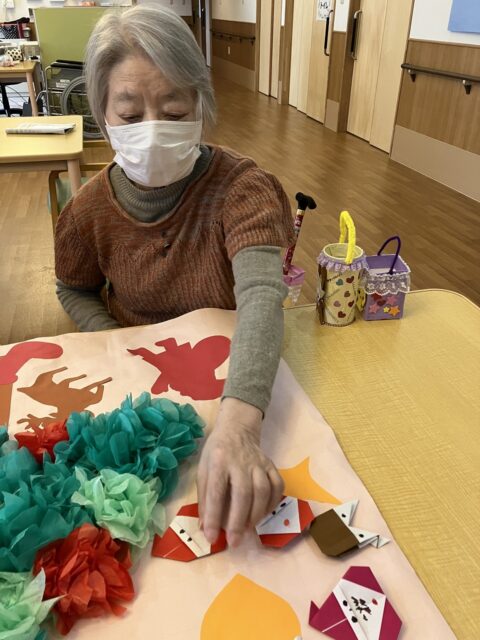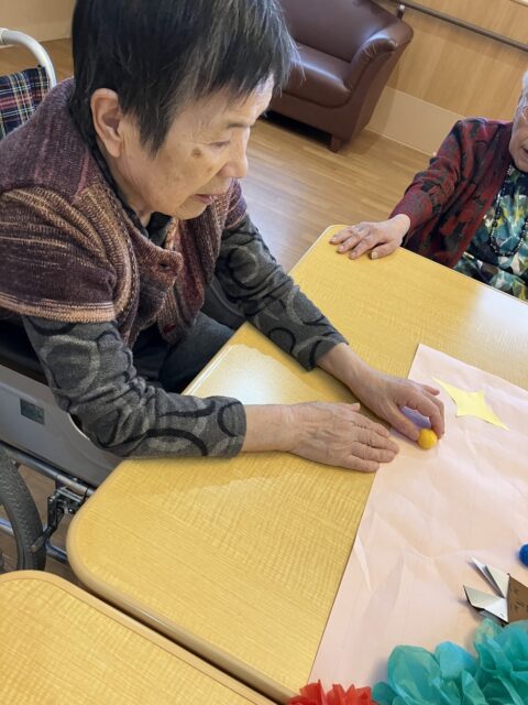 お花紙でツリーにして 飾りつけを利用者様にしてもらいました✨