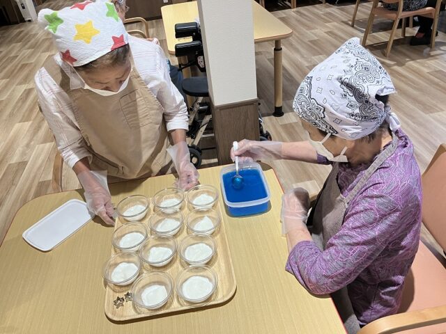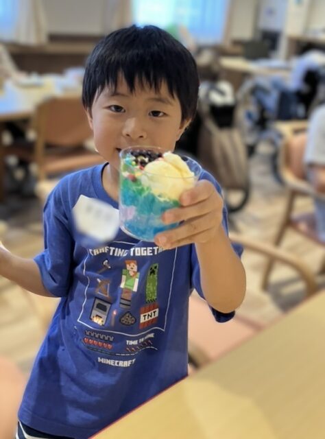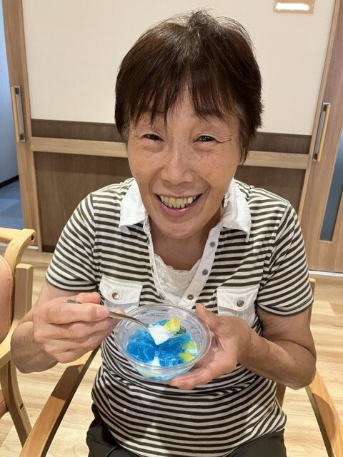 子どもたちはワクワク😜アイスをのせ綺麗なゼリーが完成しました!!
