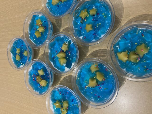 今回は簡単なデザート作りとして3色のクリームソーダゼリーを用意しました!!