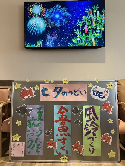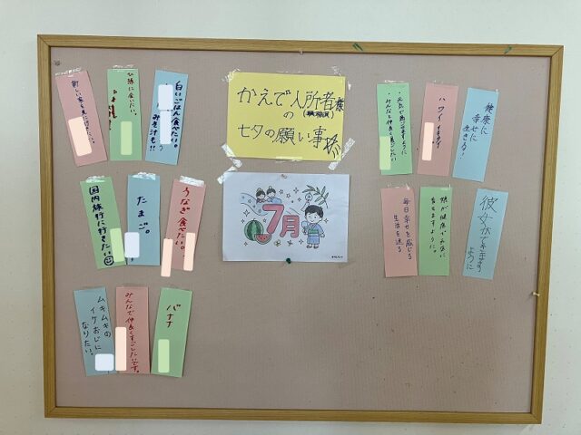 7月7日七夕の日に利用者様に七夕の願い事を短冊に書いていただきました!✨