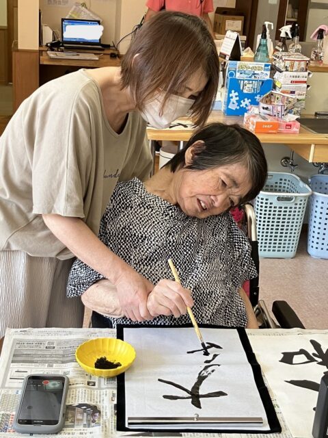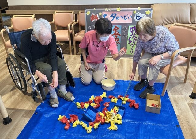 短冊に自分で願い事を書くことが難しい方には、職員が代わりに書く事等行いました。