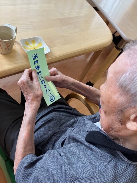 どこか行きたい場所や食べたいもの利用者様1人1人異なる願い事があり、短冊を見ているだけでとてもワクワクした気持ちになりました!!😊