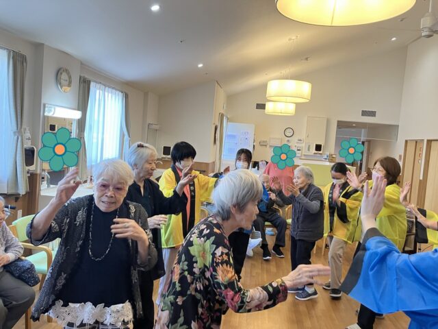 お昼からは、短めの体操をし施設の利用者様と参加者が合同で