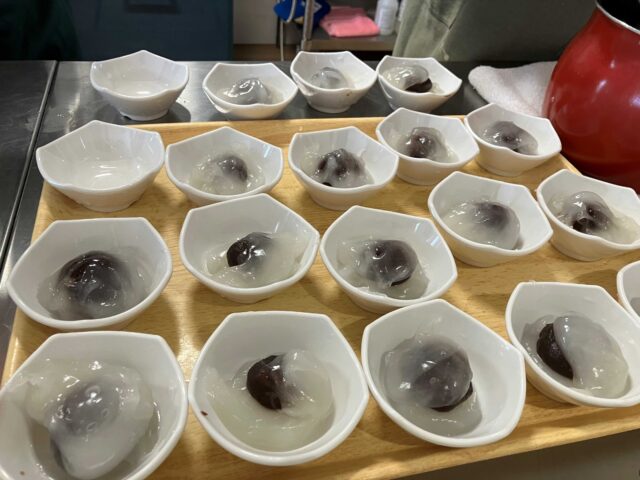 黄桃を星✩の形に切り抜く作業は、「うまくできひんわ~」「綺麗にできたわ♡」と楽しそうに作られておられました。