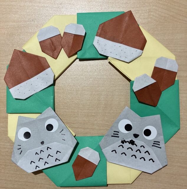 どんぐりはとても小さく折りにくかったですが皆さん集中し、