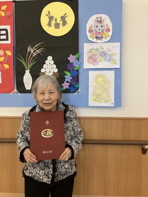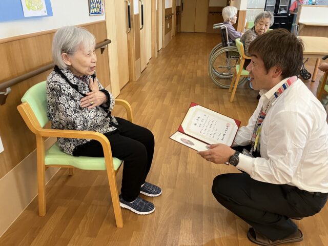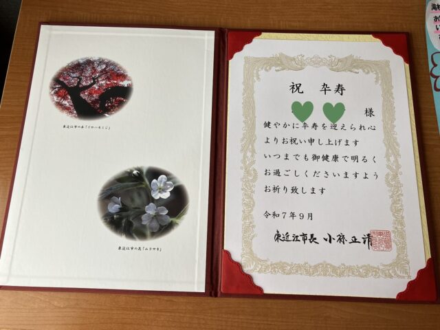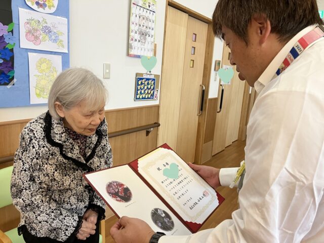 先日、利用者様の90歳のお祝いに市役所の長寿福祉課の方が