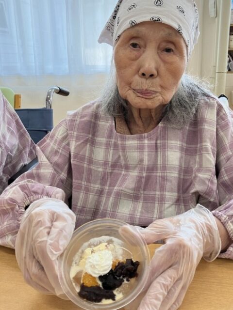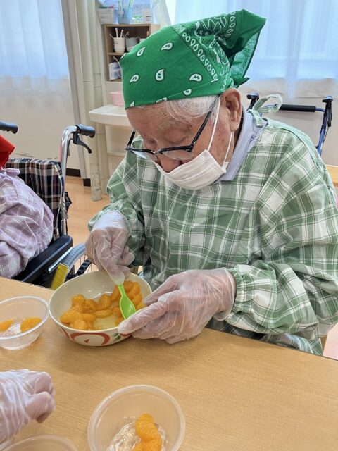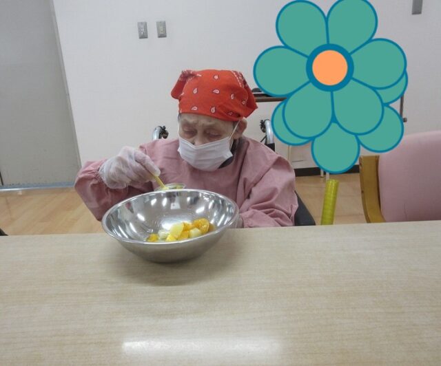 おやつレクレーションであんみつ作りを行いました。