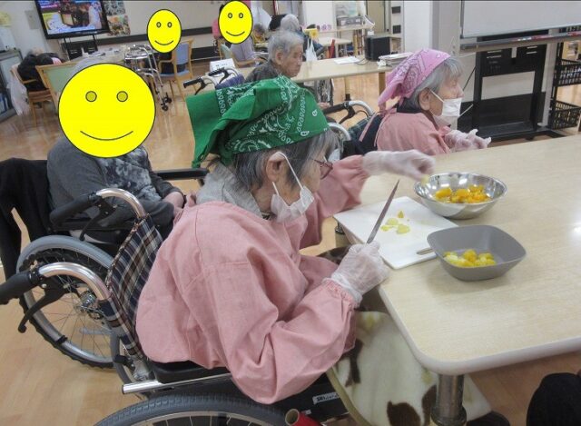 「こんなのしたことないなあ」「この位でよいかな😊」等と利用者さん同士でお話しされながら和気あいあいとした雰囲気でおやつ作りを楽しみました☆