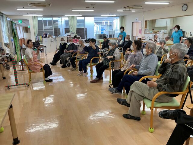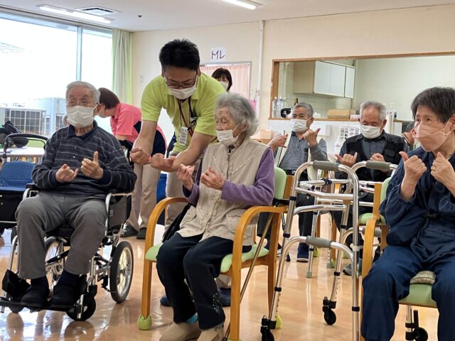 6月11日に外部ボランティアの堤様が来てくださり、認知症予防エクササイズを利用者の皆様が楽しめるよう実演してくださいました!