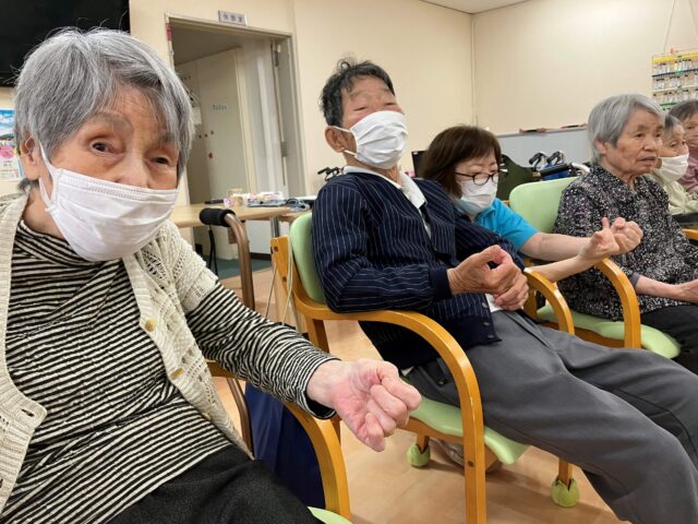 その他にも、職員が前に出て、リハビリ体操を行い、普段動かすことがない身体のストレッチも行いました!!