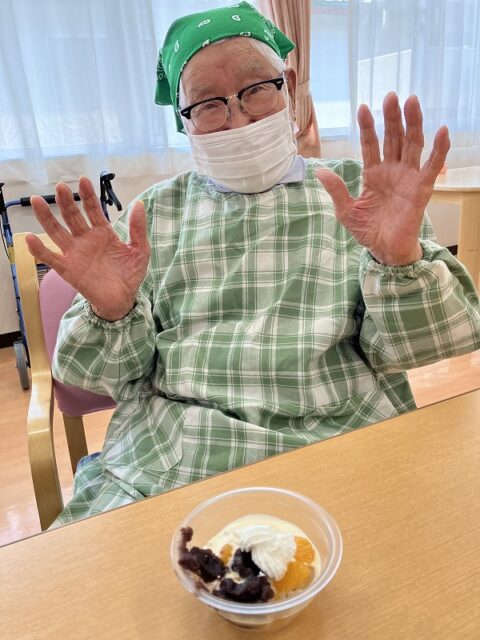 スイカはおやつに美味しくいただき「甘くておいしいわぁ」と皆さん完食されていました!
