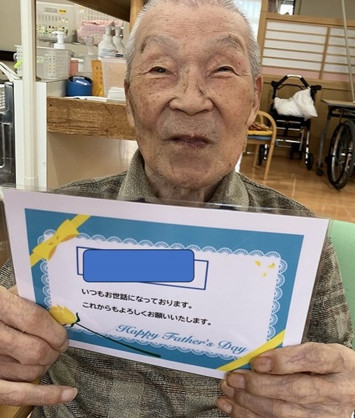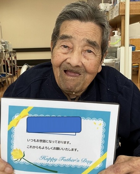 6月15日、父の日にラミネートして作成した、父の日カードを利用者様に渡し、