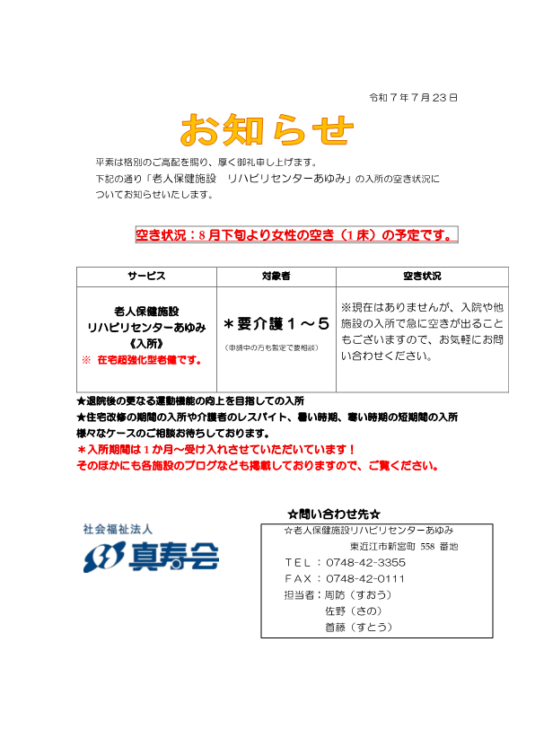 おしらせ ページ選択 新着情報 ブログ 新着情報 表示月を選択 2025年12月 (2) 2025年11月 (2) 2025年10月 (5) 2025年9月 (4) 2025年8月 (3) 2025年7月 (5) 2025年6月 (4) 2025年5月 (5) 2025年4月 (5) 2025年3月 (5) 2025年2月 (7) 2025年1月 (6) 2024年12月 (4) 2024年11月 (5) 2024年10月 (7) 2024年9月 (3) 2024年8月 (3) 2024年7月 (4) 2024年6月 (3) 2024年5月 (5) 2024年4月 (6) 2024年3月 (3) 2024年2月 (2) 2024年1月 (3) 2023年12月 (2) 2023年11月 (5) 2023年10月 (2) 2023年9月 (2) 2023年8月 (2) 2023年7月 (2) 2023年6月 (2) 2023年5月 (2) 2023年4月 (3) 2023年3月 (1) 2023年2月 (1) 2025年07月 リハビリセンターあゆみ 空き状況(7月23日) 2025.7.24 « 前へ一覧 次へ » 採用情報 施設案内