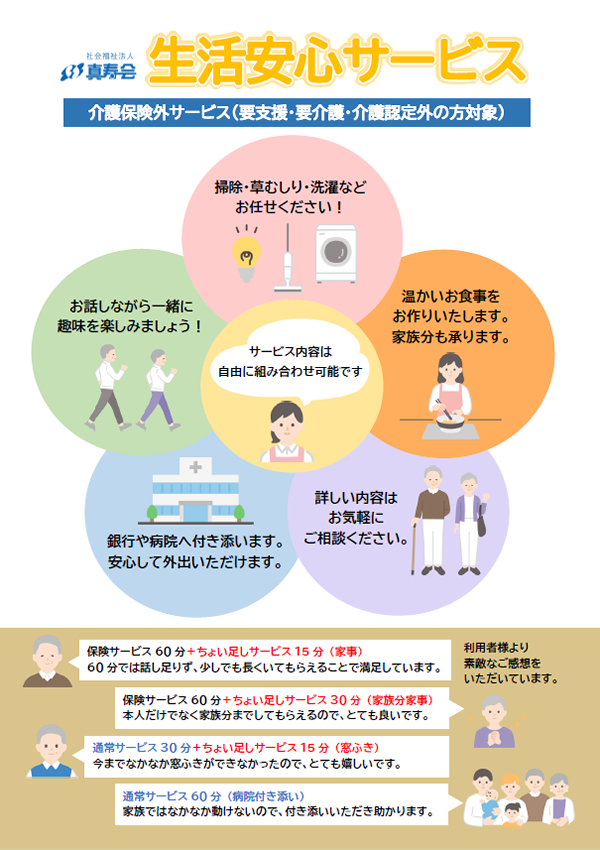 介護保険外サービス(要支援・要介護・介護認定外の方対象)もあります。