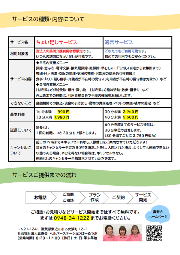 | サービス提供時間 | 毎日 8:30~17:00 |