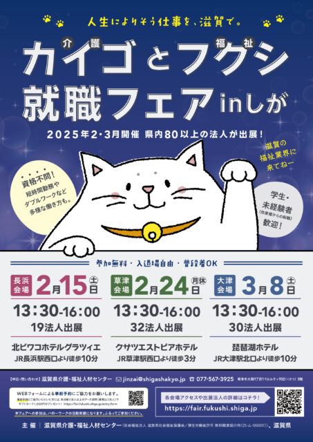 2/18「カイゴとフクシ就職フェアinしが」彦根会場に参加します!