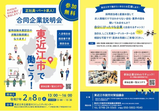 2/8「東近江市で働こう!合同企業説明会」に参加します。