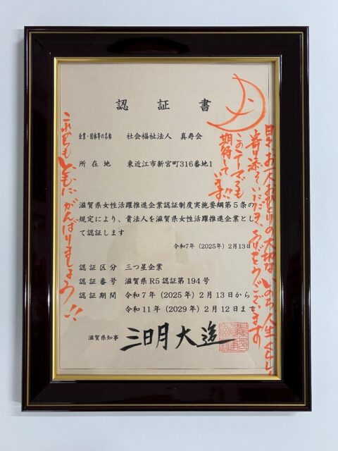 「滋賀県女性活躍推進企業」三つ星企業に認定されました。